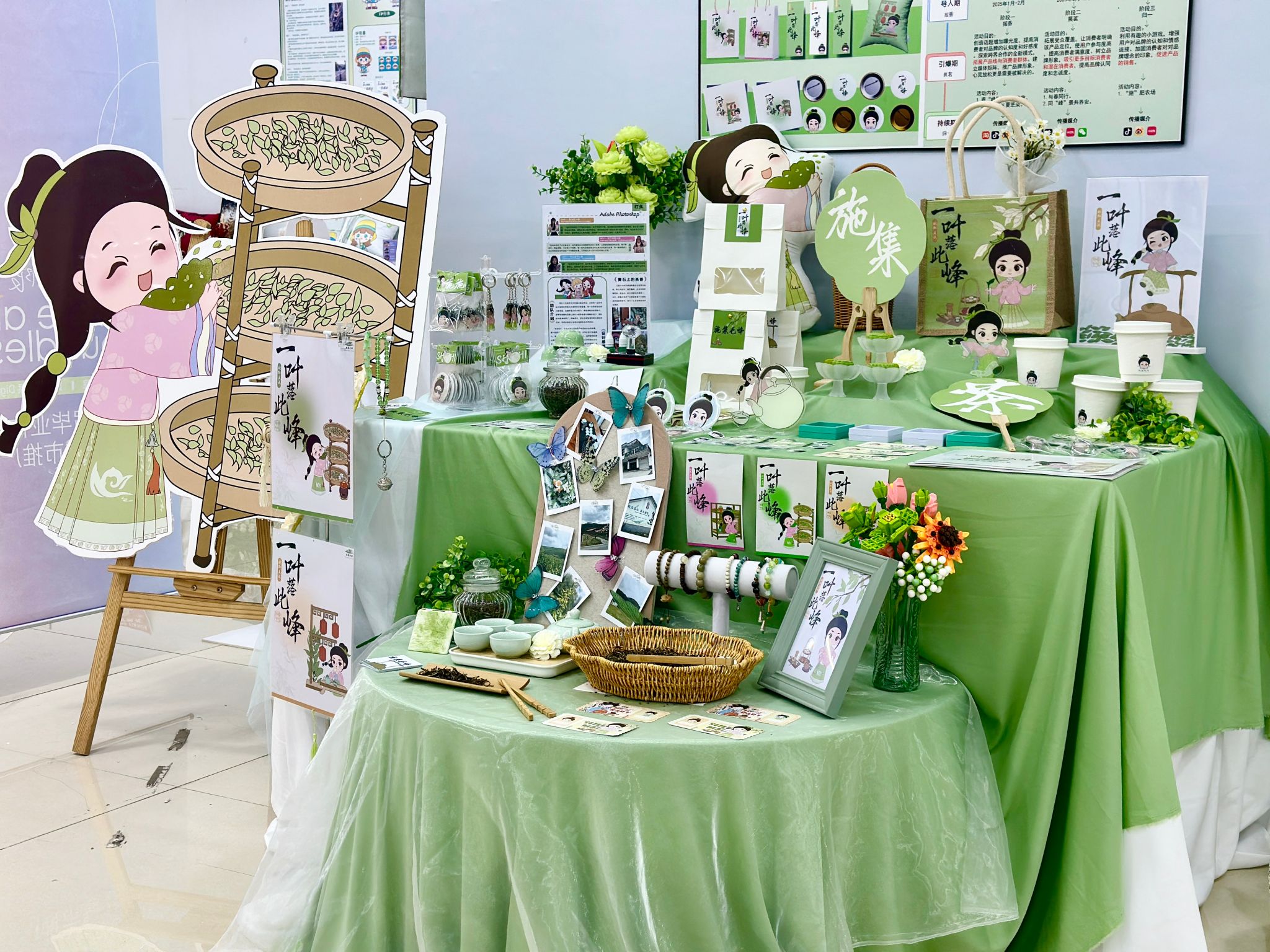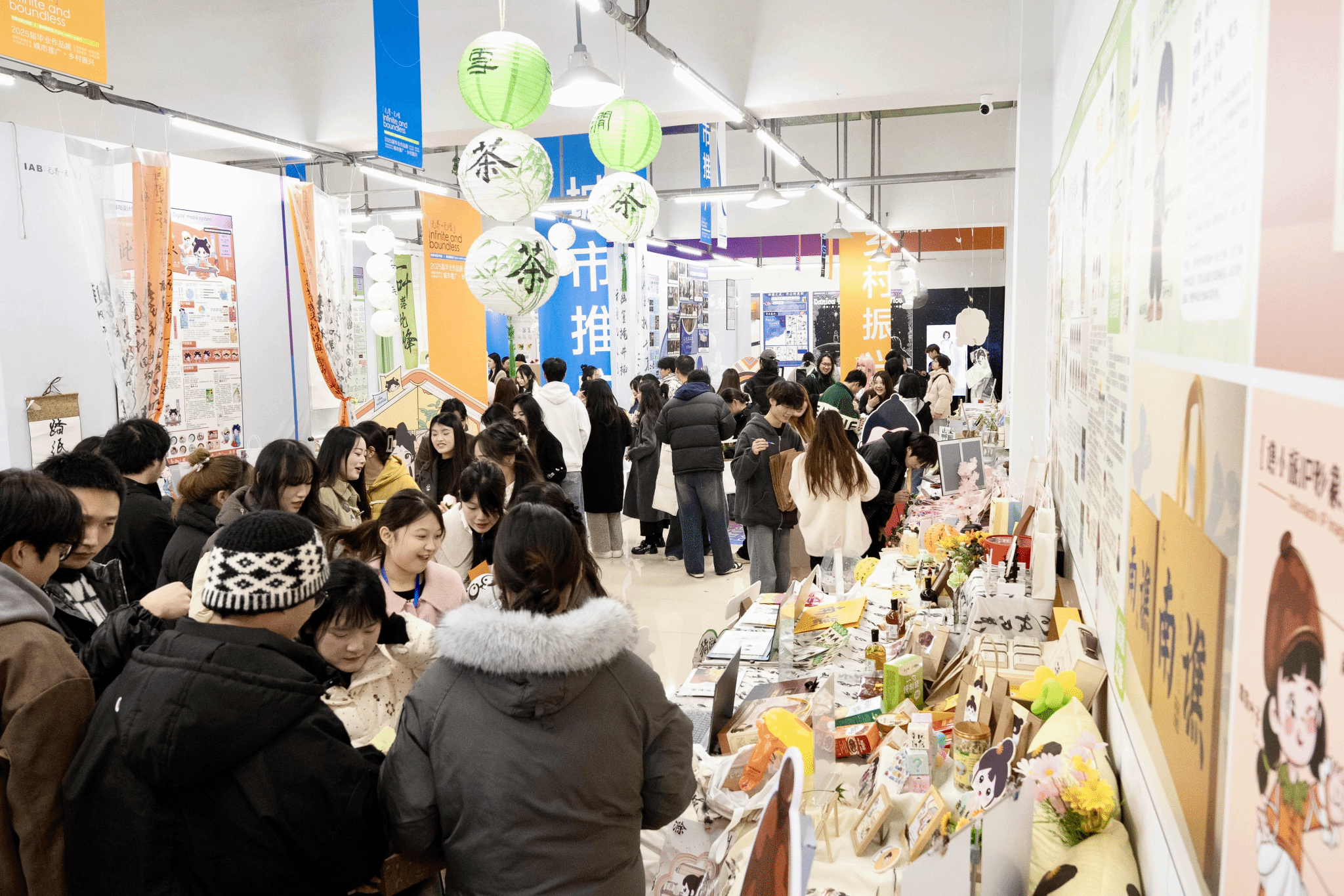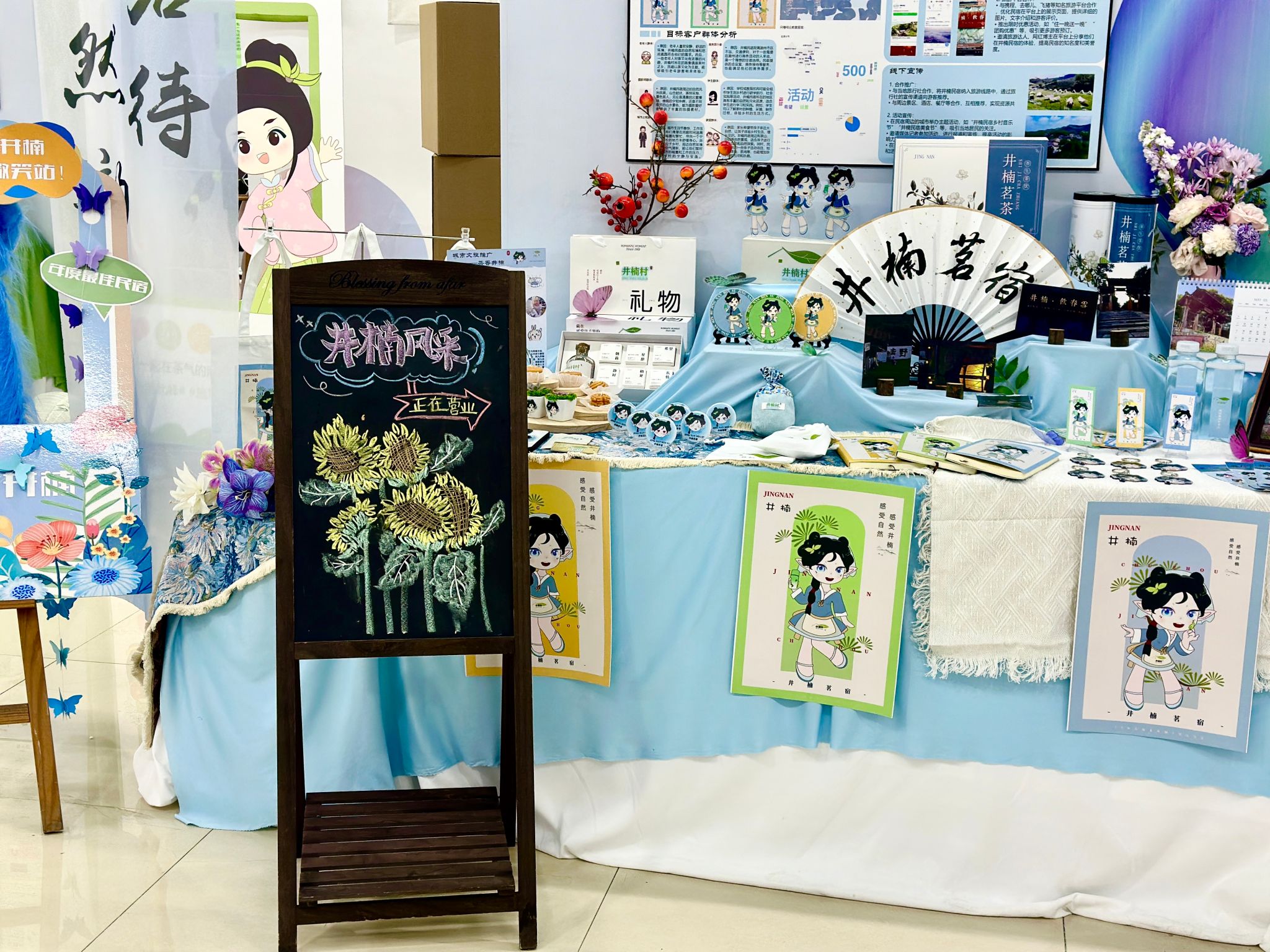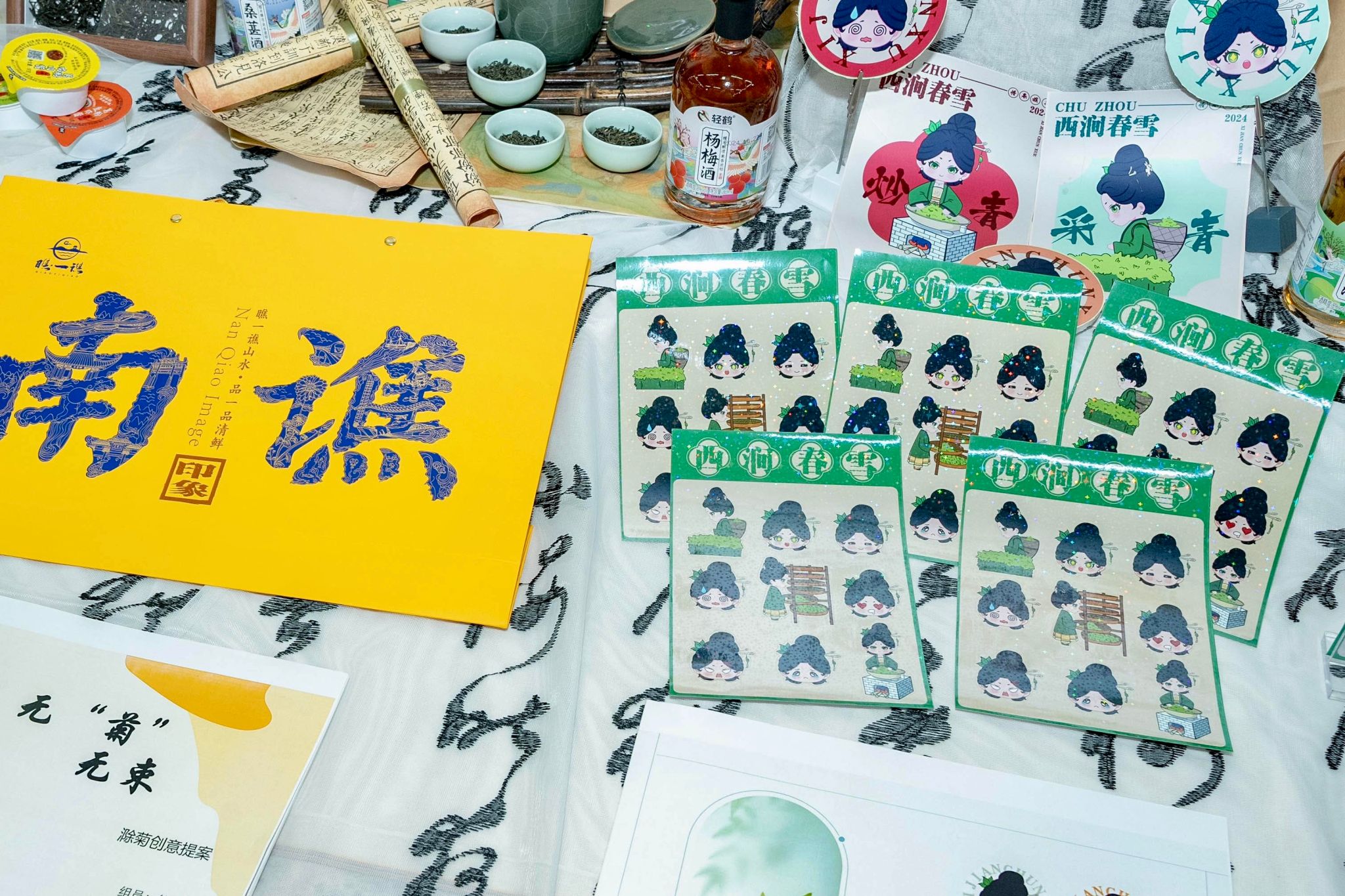 在展览现场,“南谯文旅&滁职”联合展位前,同学们将滁菊品牌形象与推广策略进行了全面的升级提档,无“菊”无束、“菊”世无双、别“菊”一格等系列化IP设计与推广策略,生动有趣且充满活力,吸引了众多观展师生;在“来滁与书共振”展位,同学们将滁州图书馆的建筑元素与地方文化结合,创新出“滁小蝶”“滁茧茧”等形象,并策划了全年11个可执行、能落地的推广活动方案;井楠茗宿作为南谯区人气景点,同学们通过扎根当地,对其文化因子进行提取和梳理,罗列出了详细的创意方案,一件件充满诗意的文创产品,十分精美;华体体育在线登录廉洁文化品牌也设立了主题展位,以欧阳修、王阳明等具有地方代表性人物为原型,通过UI界面、策略推广等年轻化的视觉传达完整呈现,广受好评。还有一些观展师在“一叶落此峰”施集毛峰展位前驻足良久,仔细了解其背后的地方茶文化相关内涵。在影像单元,《父辈的梦想》、《龟兹》和《太空行》等作品,将科技梦想、非遗传承通过数字技术进行了数字化呈现。值得一提的是,每个展位都设置了有趣的互动环节。
