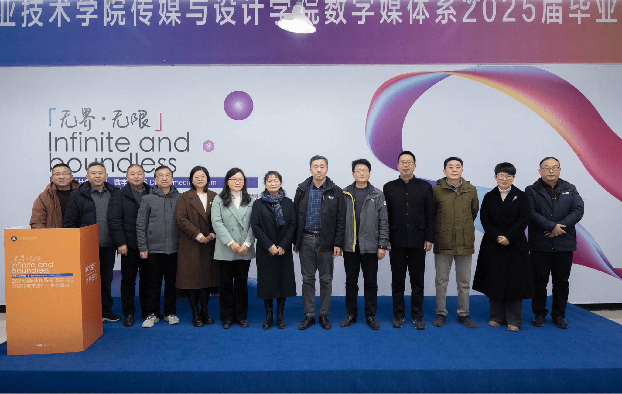 为充分发挥华体体育在线登录传媒与设计学院数字媒体系专业领域的科研优势,推动地方数字文化产业发展引领,提升科研成果转化率,夯实“产学研用”一体化,12月14日上午,由华体体育在线登录与南谯区文化和旅游局联合主办的2025届数字媒体系“无界·无限”主题毕业作品展在校大学生活动中心拉开帷幕。校党委副书记杨家庆,滁州市文化和旅游局局长王连侠,校纪委书记孙静,校党委委员、副校长苏有良,滁州市图书馆馆长章磊,校党委委员、工会主席李平权,校党委委员、宣传统战部部长王冬等出席展会,南谯区农业农村局、南谯区文化馆、南谯区乡村投资发展有限公司、滁州市亭城文旅旅游管理有限公司、南谯区乡村发展投资有限公司、施集镇宣传部以及南谯谯丰文化传媒有限公司等政企负责人应邀观展。学校实验实训中心、科技处等相关部门参加活动。