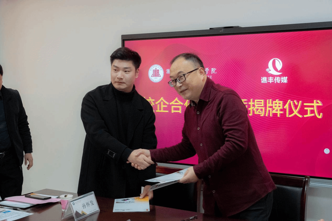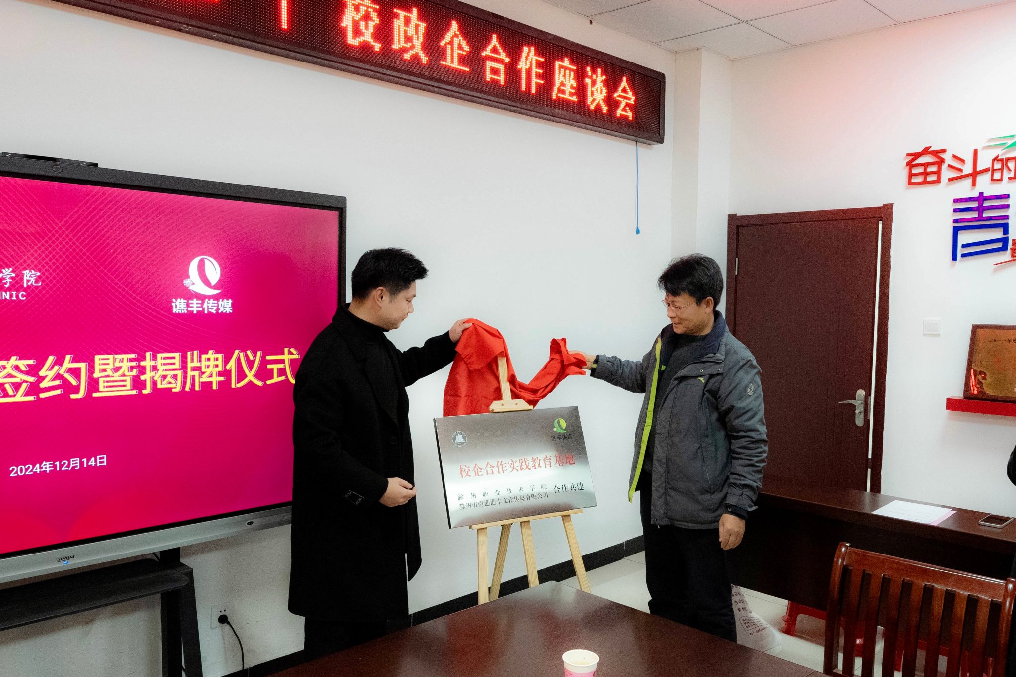 展览开幕前,校政企就如何进一步合作展开“深化产教融合,助力地方发展”座谈会,南谯区文化和旅游局局长项右霞结合区域文旅产业发展现状,提出以校政企三方合作为抓手,共同挖掘和打造具有地方特色文旅品牌的“三好”共建模式。南谯区农业农村局局长陈金文表示,可在农业科技推广、农产品创意包装与营销等领域开展合作,助力乡村振兴。企业代表们也纷纷表达了对校企联合培养人才的期望,力求实现“毕业即就业”的“双向奔赴”。校党委委员、副书记杨家庆提出,通过校政企深度合作,学校能够更好地了解市场需求,为社会培养实用型人才,为企业提供人才资源,提升创新能力与竞争力,推动职业教育与城市发展双向赋能、同频共振。会上,南谯谯丰文化传媒有限公司与传媒与设计学院共同签署了校企战略合作框架协议,校党委委员、副校长苏有良与企业代表共同为合作项目揭牌。