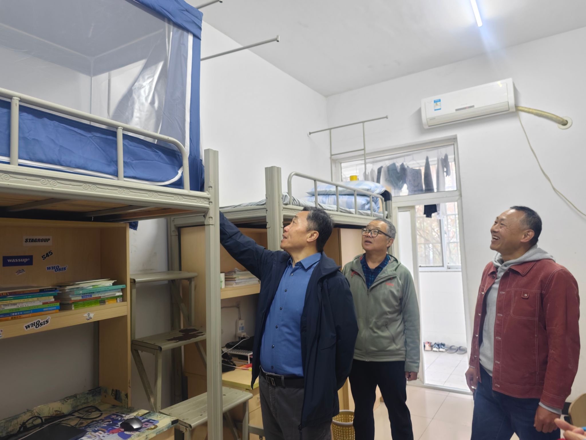 杨家庆在学院党政班子成员和辅导员的陪同下,依次走访多间学生宿舍,仔细查看用电设施设备,包括插座、电线、电器等是否存在违规使用或老化损坏的情况,对发现的个别私拉乱接电线现象当场提出整改要求。