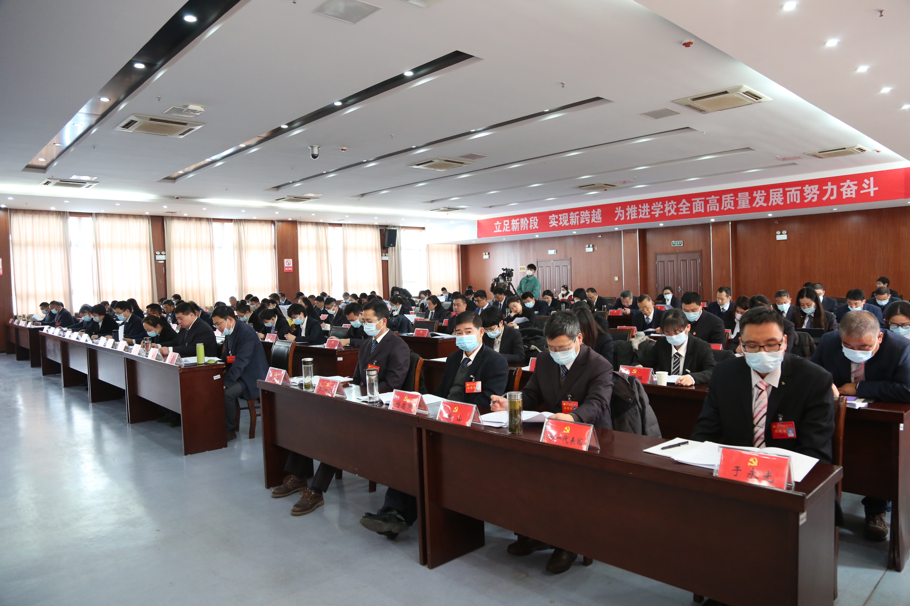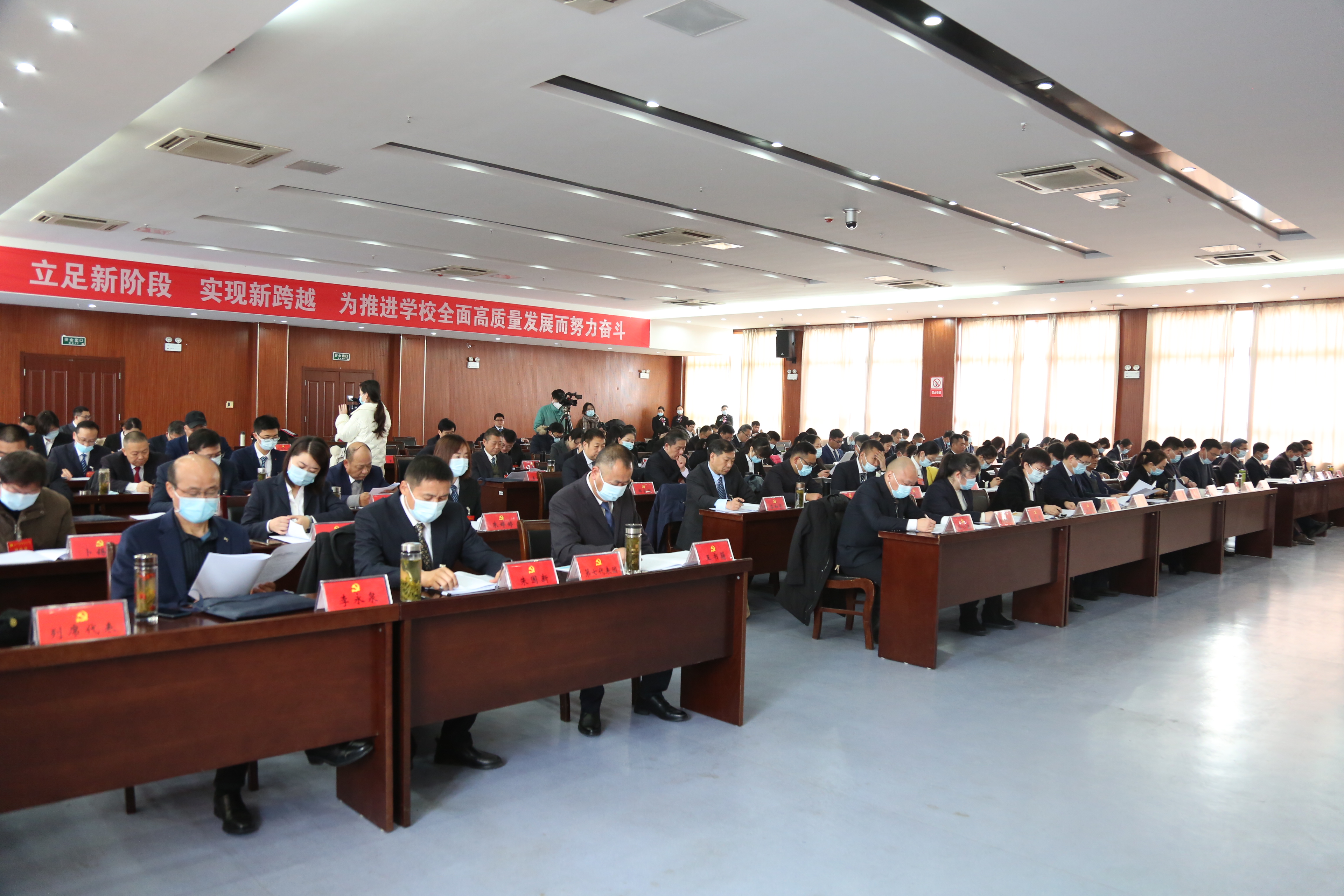 校党委书记曹付忠同志代表学校党委作题为《立足新阶段 实现新跨越 为推进学校全面高质量发展而努力奋斗》的工作报告。报告从学校“过去五年来的工作”“今后五年工作的指导思想和奋斗目标”“今后五年的主要任务”“全面加强党的建设,为学校高质量发展提供坚强政治保证和强大动力”四个方面作了阐述。