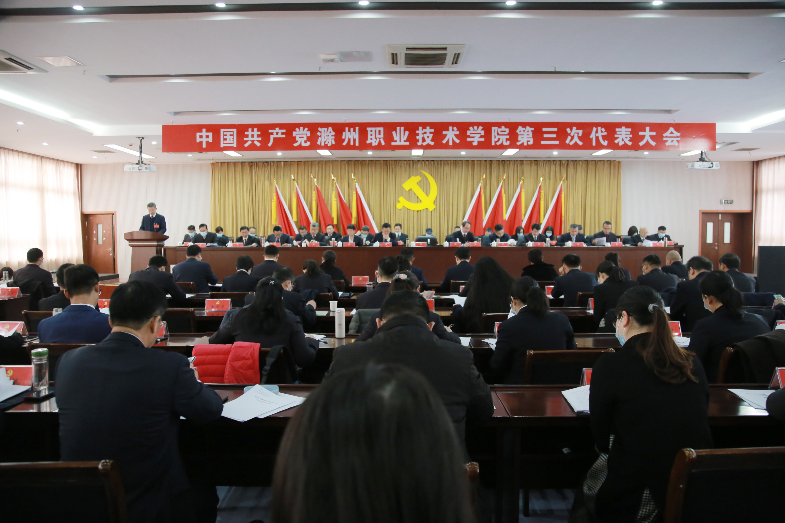 报告提出了今后五年的指导思想和奋斗目标,今后五年要以习近平新时代中国特色社会主义思想和习近平总书记关于教育的重要论述为指导,全面贯彻党的十九大和十九届二中、三中、四中、五中、六中全会精神,完整、准确、全面贯彻新发展理念,认真落实全国、全省、全市职业教育大会精神,坚持党的全面领导,坚持正确的办学方向,坚持职业教育类型定位,以推进学校全面高质量发展为主题,以综合改革为动力,着力实施立德树人、高水平专业群建设、“双师型”教师队伍建设、质量管理、校企合作、智慧校园建设、平安校园建设和党的建设等八大工程,真抓实干,创优争先,奋力谱写学校高质量发展的崭新篇章,为滁州现代化建设提供更多更好的人才和技能支撑。今后五年的奋斗目标是完成“十四五”发展规划,全面建成地方技能型高水平大学和实现本科层次教育新跨越,奋力实现“2358”目标。到“十四五”末,实现人才培养质量显著提升;专业结构显著优化;师资队伍整体素质显著提高;科技和社会服务能力显著增强;办学条件显著改善;治理能力显著提升。
