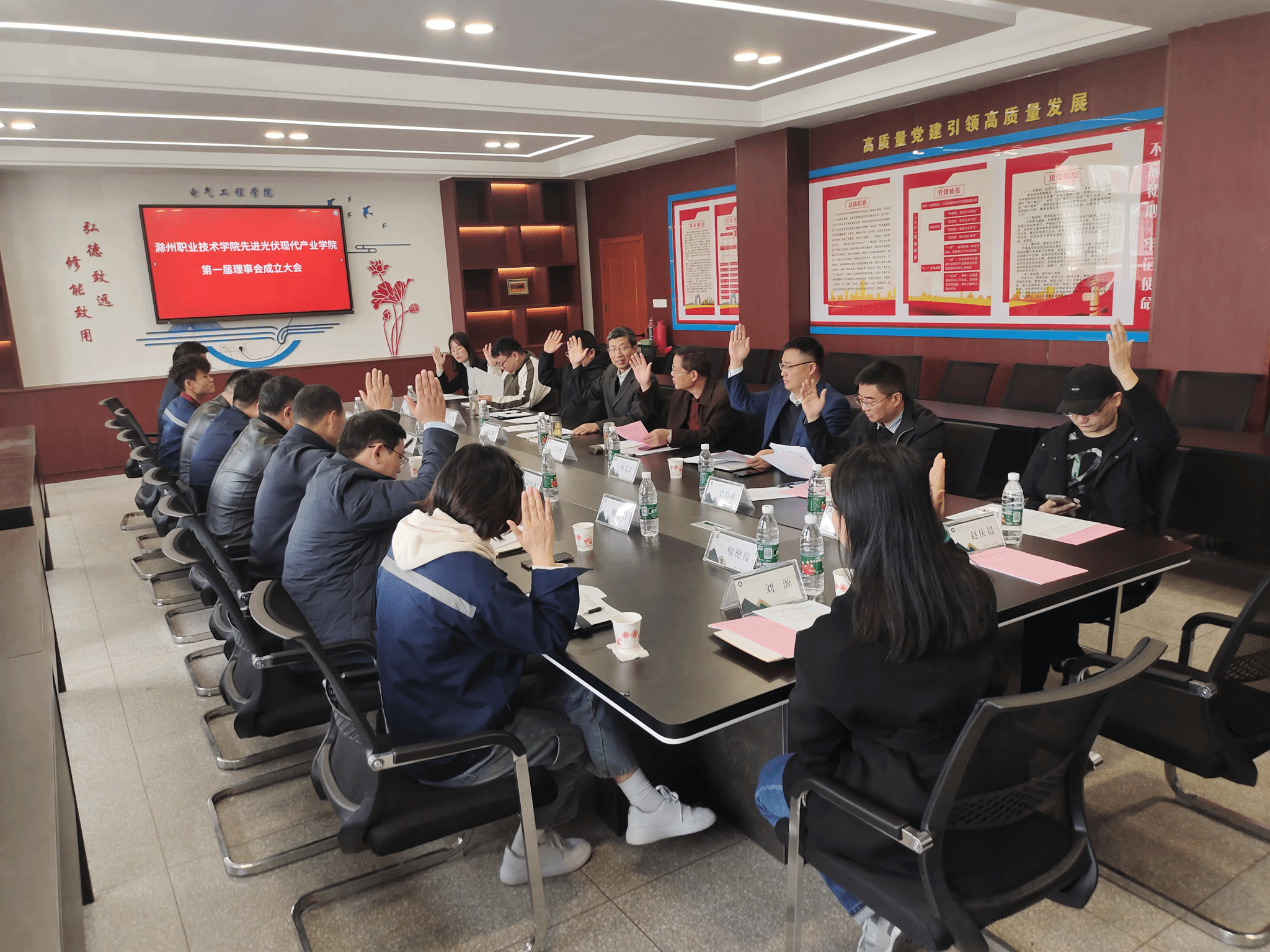 会上,电气工程学院院长张信群宣贯《安徽省教育厅关于公布2023年度省级职业院校现代产业学院立项名单的通知》,并详细介绍了产业学院的基本情况、建设思路、建设成效、存在问题与困难以及下一步打算。与会理事会成员在听取相关介绍后先后发言,对学校成立先进光伏现代产业学院,推进产业学院建设,健全产业学院理事会治理模式,给予了高度评价。理事会成员审议、表决通过了《华体体育在线登录先进光伏现代产业学院理事会章程》。
