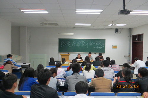 为了深入学习党的十八大精神,切实把握好学生党员发展质量关,在经贸系党总支的领导下,团总支和学生会就习近平总书记在各界优秀青年代表座谈时的重要讲话召开了“实现中国梦,青春勇担当”专题座谈会。座谈会于5月9日晚在经贸系1119教室召开,由团总支书记何堃老师主持,团总支、学生会全体成员参加了此次座谈会。