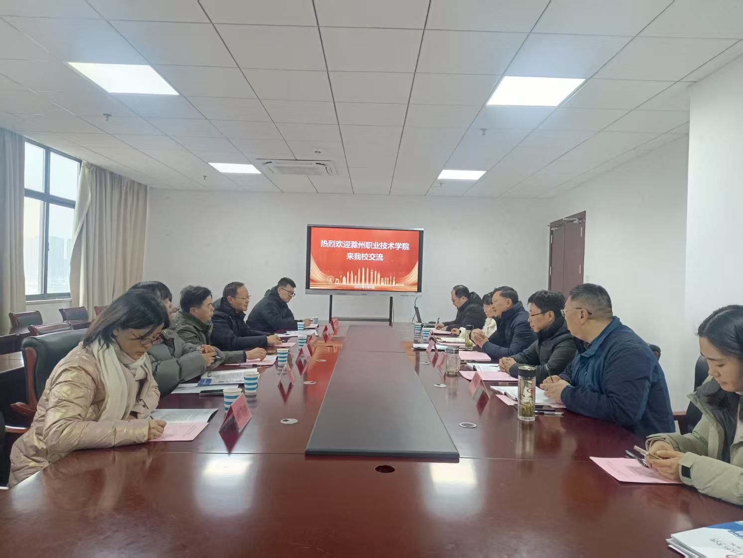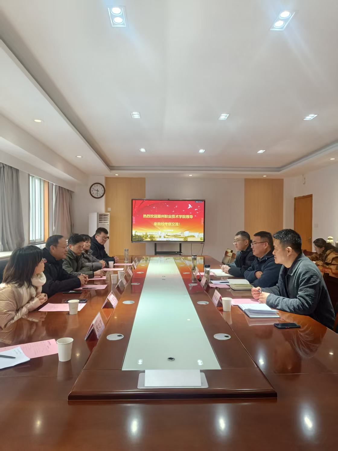 下午,调研组前往安徽机电职业技术学院,与该校教务处处长张国政、副处长张钱斌、电气工程学院副院长张莉及相关职能部门负责人进行了座谈。张国政处长详细介绍了该校在实验室建设和学生技能竞赛方面的特色举措及取得的显著成效。双方就实验室建设与管理、技能竞赛的组织与培训、1+X证书制度的实施与推广等话题进行了深入探讨。座谈会后,调研组实地参观了该校的实验室及其他实践教学场所,并观摩了虚拟仿真实训基地的运行情况,进一步了解了该校在实践教学方面的创新模式。