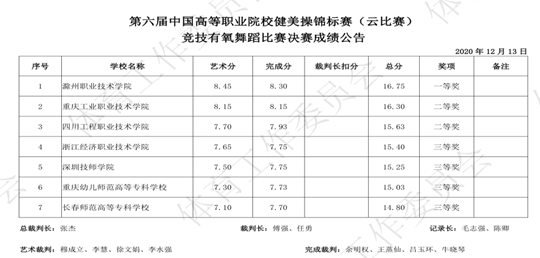 12月12-13日,由中国大学生体育协会主办、中国大学生体育协会职业教育学校体育工作委员会执行、浙江经济职业技术学院承办的第六届中国高等职业院校健美操锦标赛(云比赛)决赛通过腾讯直播的方式线上举行。华体体育在线登录健美操队发挥出色,斩获两金一银一铜的佳绩,比赛成绩位列全国所有参赛学校前列。
